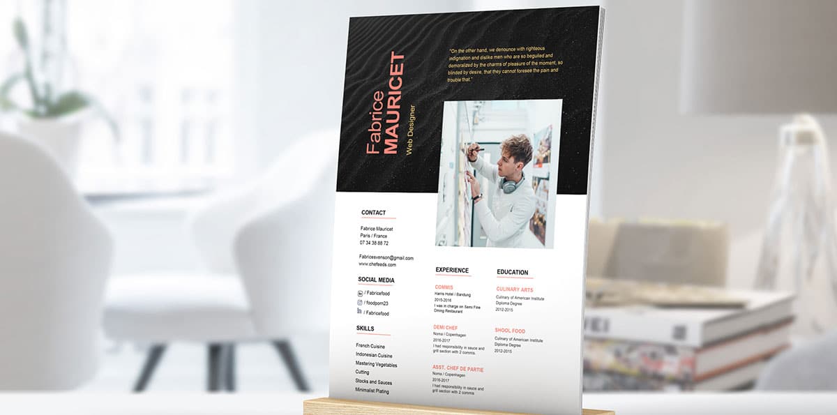 Tout est plus simple sous Powerpoint. On connaît tous ce logiciel pour les créations de présentations professionnelles en entreprise. Cependant, il peut être utilisé dans bien d’autres occasions. Il vous permettra ici de créer de magnifiques CVs sur-mesure. Vous pouvez très simplement modifier les icônes, les images utilisées ainsi que les polices d’écriture. Rien de plus facile alors d’utiliser de belles photos pour obtenir un CV du plus bel effet. Nous utilisons des typographies compatibles sur Mac, PC, Linux, pour éviter les problèmes de conversions. Vous n’aurez aucun problème de compatibilité lors de l’ouverture de votre fichier sur Powerpoint.